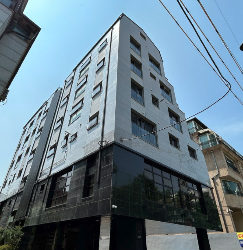 기존의 가로로 긴 입면을 해치지 않고 존치한다. 이 수평적인 오프닝은 그대로 입면의 중요한 요소로 작동하게 한다. 그러나 단순한 패턴형 오프닝은 그 효과가 크지 않다. 그래서 층별로 조금씩 새로운 재료가 전면으로 돌출한다. 이는 가로로 열린 창과 함께 더 큰 입면 강조효과로 나타난다.