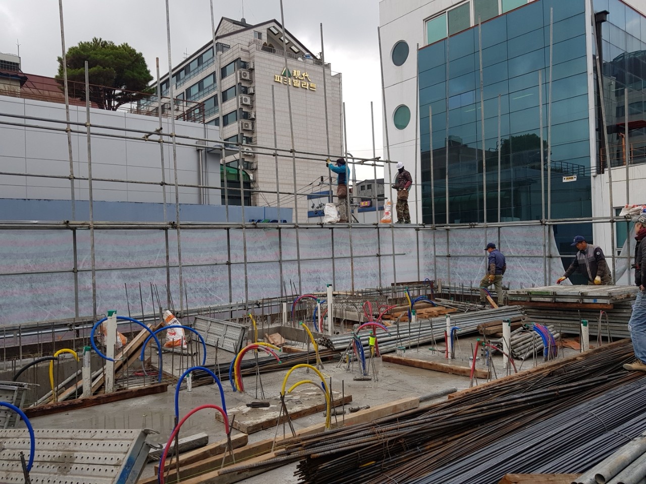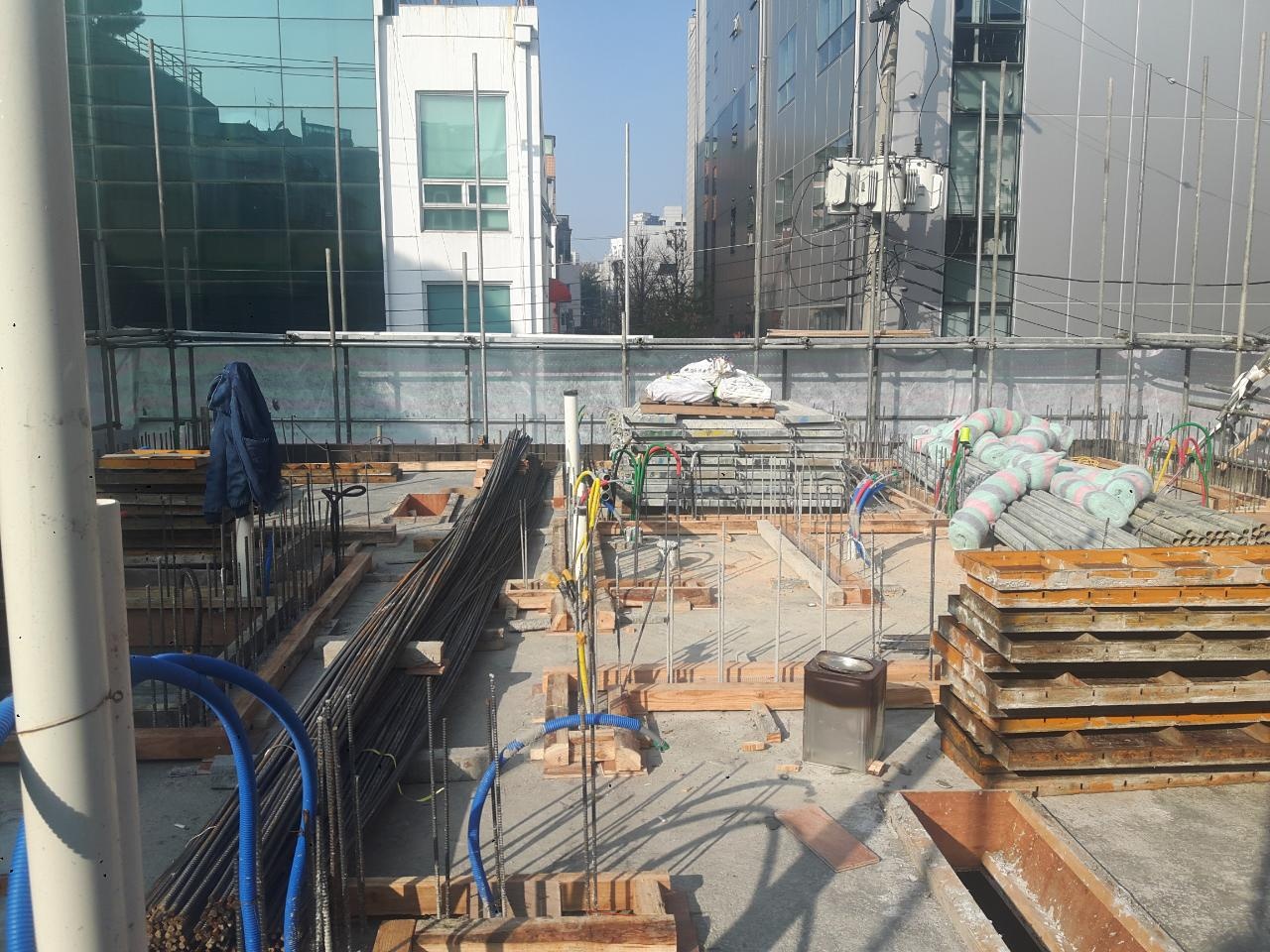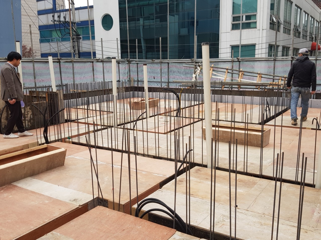 기존의 가로로 긴 입면을 해치지 않고 존치한다. 이 수평적인 오프닝은 그대로 입면의 중요한 요소로 작동하게 한다. 그러나 단순한 패턴형 오프닝은 그 효과가 크지 않다. 그래서 층별로 조금씩 새로운 재료가 전면으로 돌출한다. 이는 가로로 열린 창과 함께 더 큰 입면 강조효과로 나타난다.
