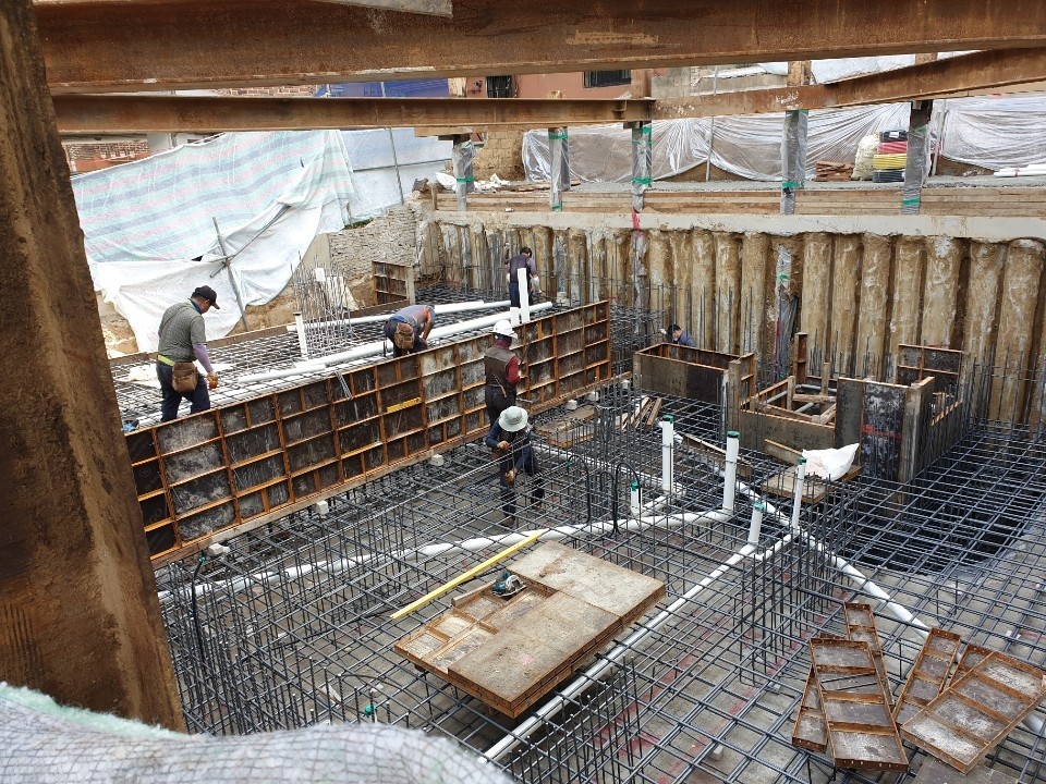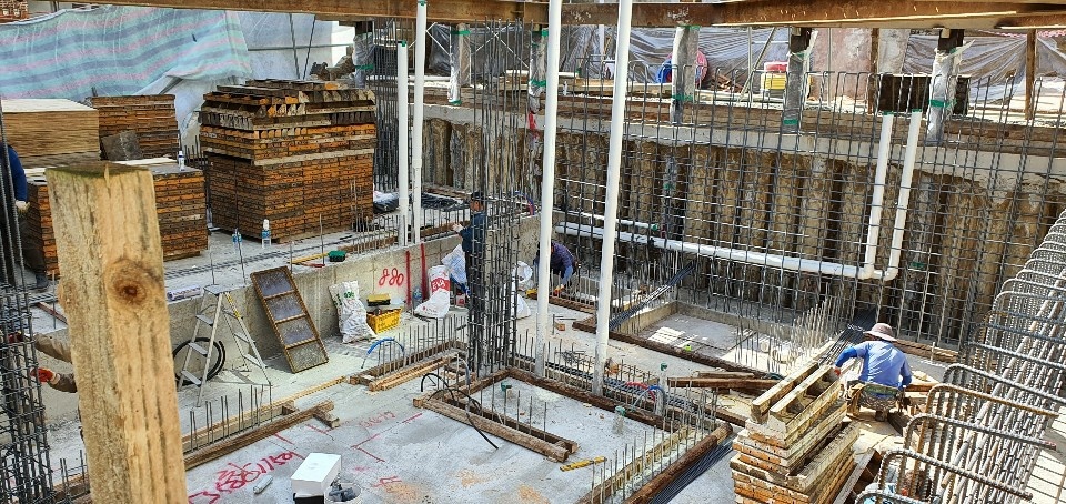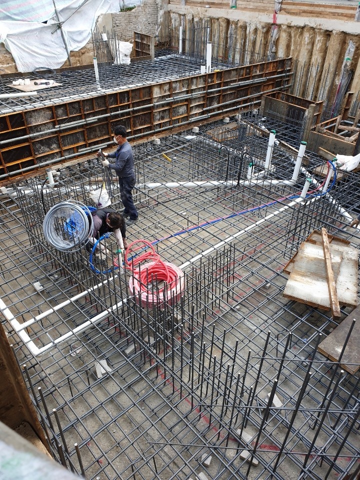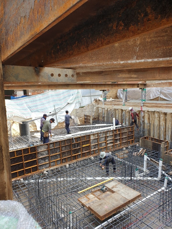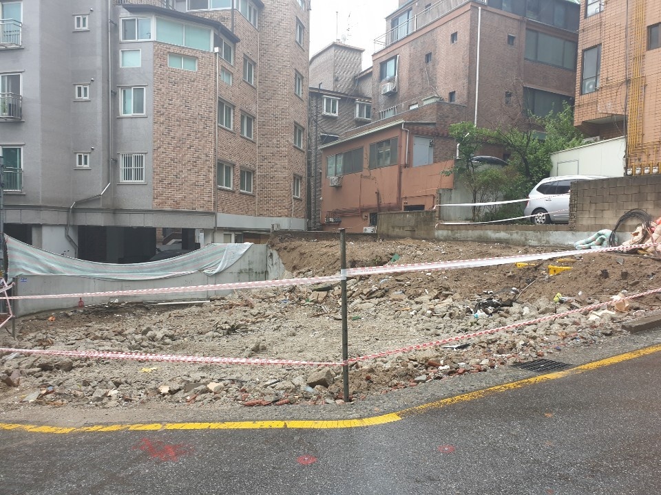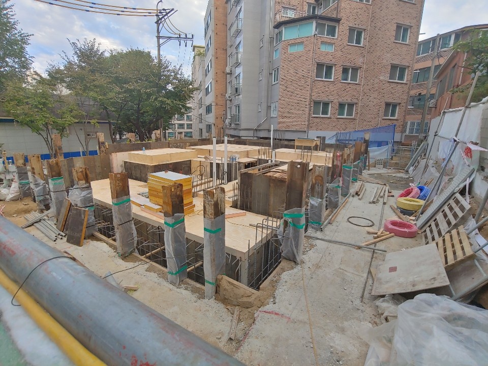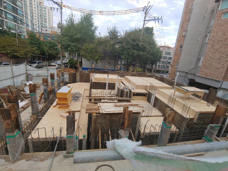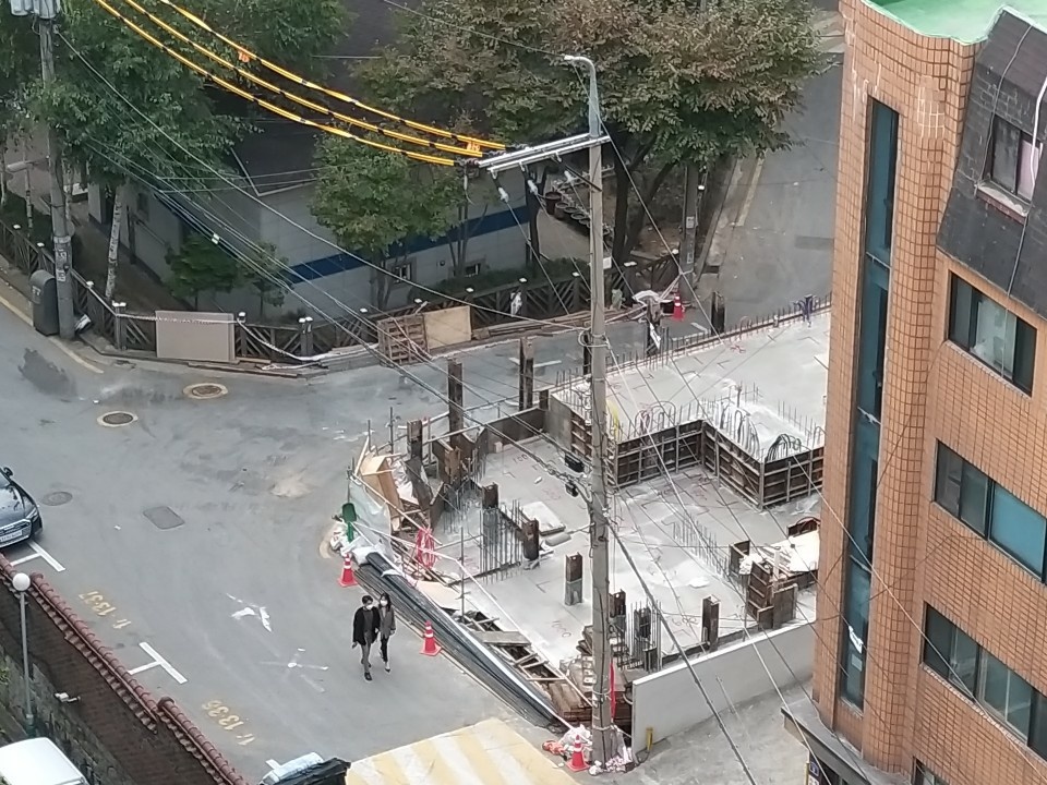 기존의 가로로 긴 입면을 해치지 않고 존치한다. 이 수평적인 오프닝은 그대로 입면의 중요한 요소로 작동하게 한다. 그러나 단순한 패턴형 오프닝은 그 효과가 크지 않다. 그래서 층별로 조금씩 새로운 재료가 전면으로 돌출한다. 이는 가로로 열린 창과 함께 더 큰 입면 강조효과로 나타난다.