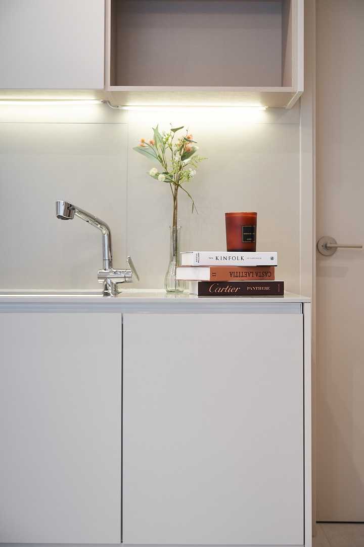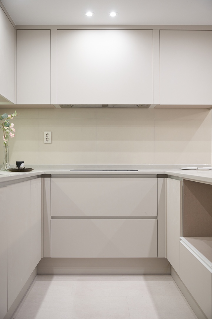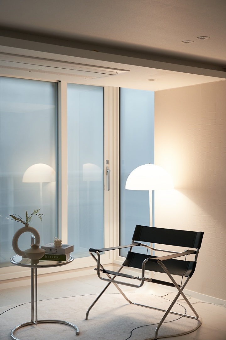 기존의 가로로 긴 입면을 해치지 않고 존치한다. 이 수평적인 오프닝은 그대로 입면의 중요한 요소로 작동하게 한다. 그러나 단순한 패턴형 오프닝은 그 효과가 크지 않다. 그래서 층별로 조금씩 새로운 재료가 전면으로 돌출한다. 이는 가로로 열린 창과 함께 더 큰 입면 강조효과로 나타난다.