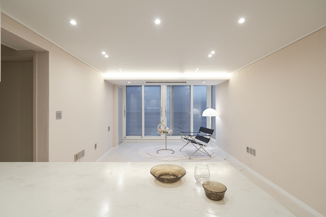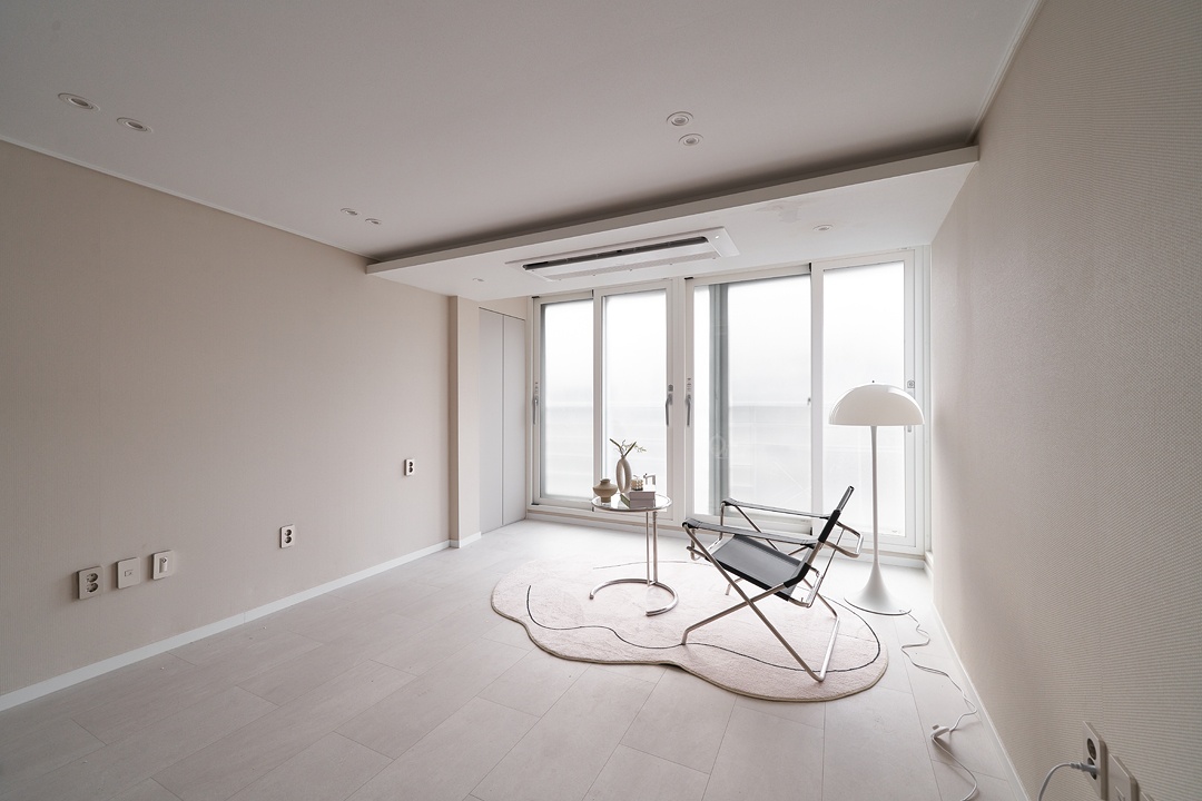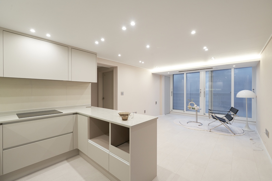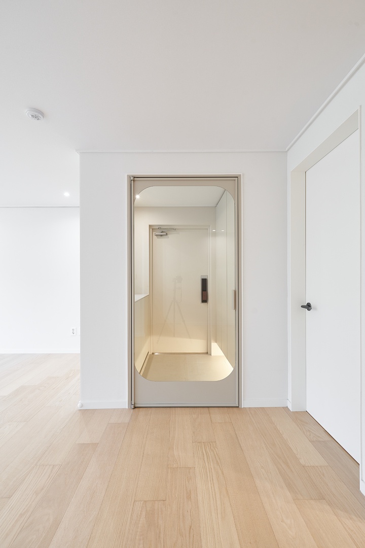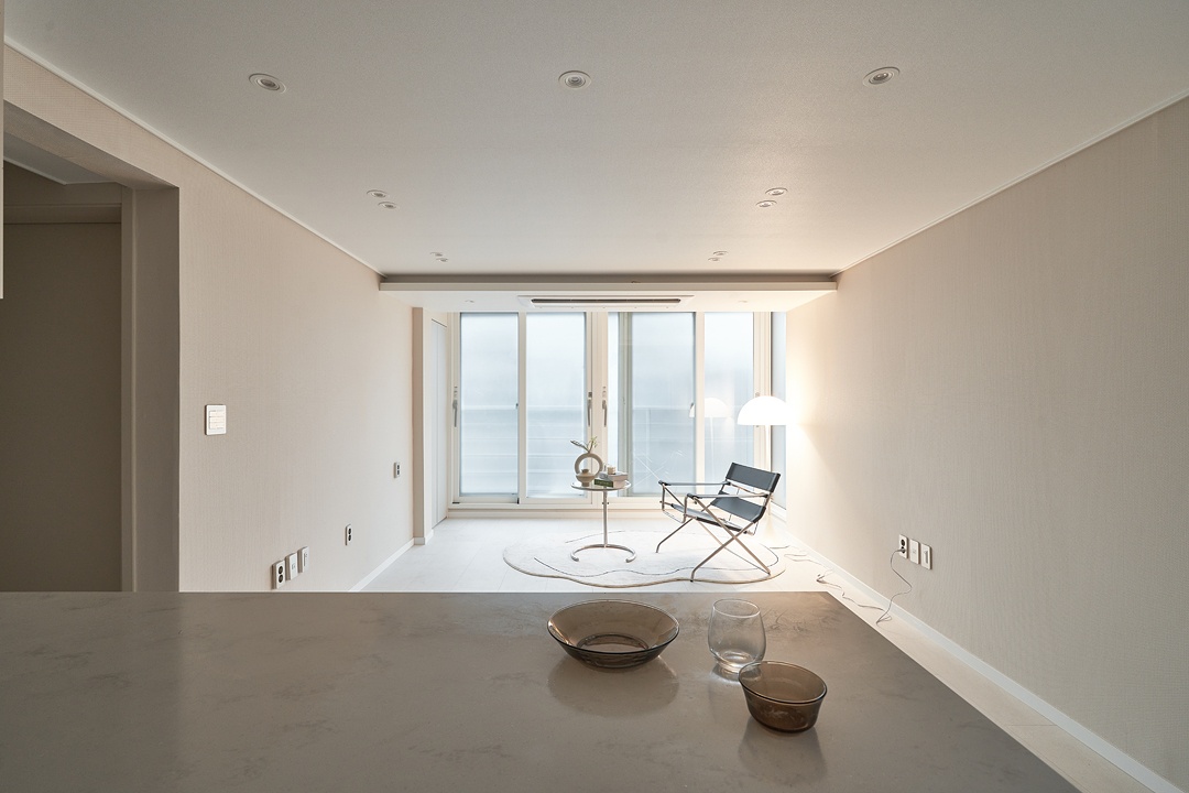 기존의 가로로 긴 입면을 해치지 않고 존치한다. 이 수평적인 오프닝은 그대로 입면의 중요한 요소로 작동하게 한다. 그러나 단순한 패턴형 오프닝은 그 효과가 크지 않다. 그래서 층별로 조금씩 새로운 재료가 전면으로 돌출한다. 이는 가로로 열린 창과 함께 더 큰 입면 강조효과로 나타난다.