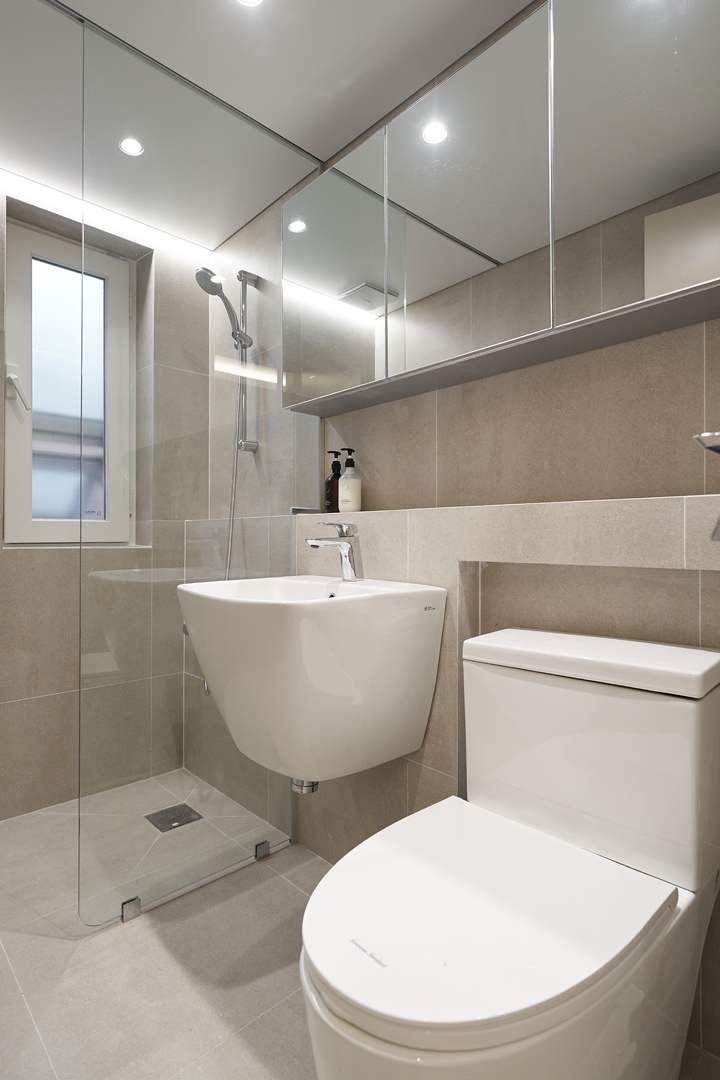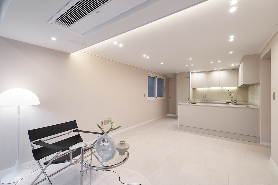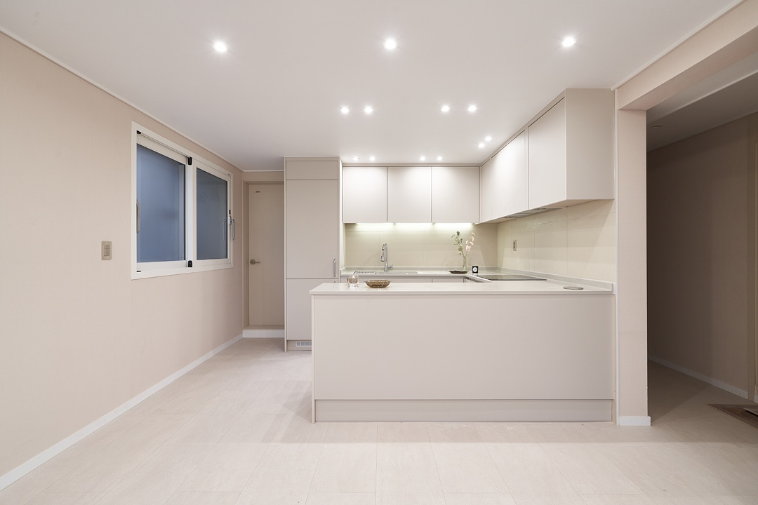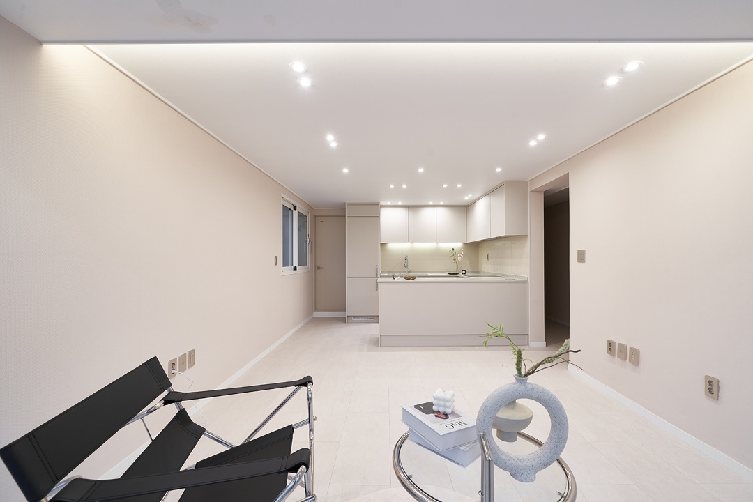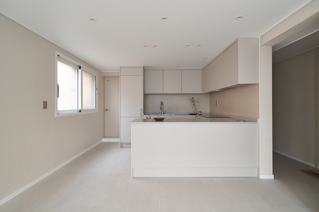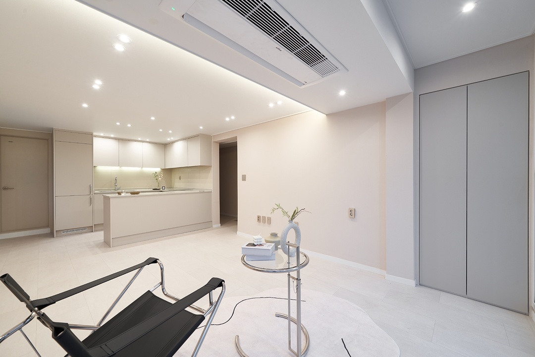 기존의 가로로 긴 입면을 해치지 않고 존치한다. 이 수평적인 오프닝은 그대로 입면의 중요한 요소로 작동하게 한다. 그러나 단순한 패턴형 오프닝은 그 효과가 크지 않다. 그래서 층별로 조금씩 새로운 재료가 전면으로 돌출한다. 이는 가로로 열린 창과 함께 더 큰 입면 강조효과로 나타난다.